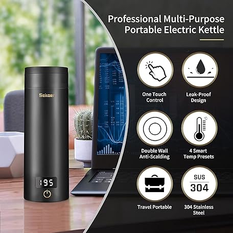 Thông tin sản phẩm Sekaer Travel Electric Tea Kettle Portable Small Mini Coffee Kettle, with 4 Variable Presets, Personal Hot Water Boiler 304 Stainless Steel with Auto Shut-Off & Boil Dry Protection, SY-618B