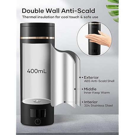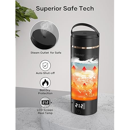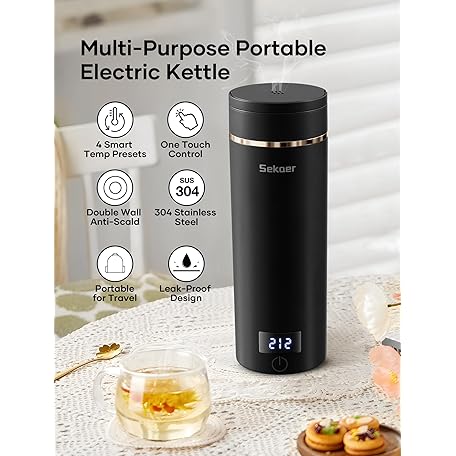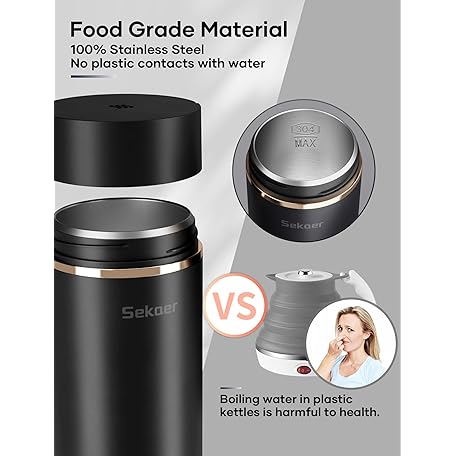 Sekaer Travel Portable Electric Kettle, Small Tea Kettle Coffee Mini Hot Water Boiler, 400mL & 304 Stainless Steel, with 4 Variable Presets and Auto Shut-Off SKE-840B
