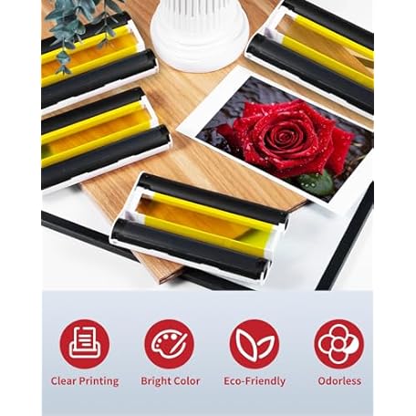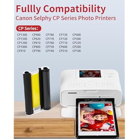 Thông tin sản phẩm Selphy CP1300 CP1500 Ink Cassette Compatible with Canon Selphy KP-108IN Color Ink Cartridges KP108 for CP1200 CP1000 CP910 CP900 CP760 CP740 Wireless Compact Photo Printer 4 x 6 inch, 4-Pack, No Paper