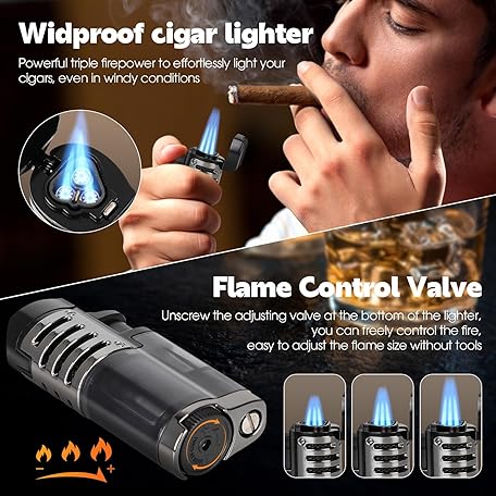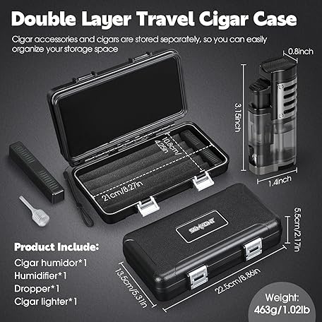 Thông tin sản phẩm SEMKONT Cigar Humidor, Portable Travel Cigar Box, Double Cigar Humidor with Separate Storage for Cigar Accessories, Cigar Travel Case with Cigar Lighter(No Butane), Holds 5 Cigars (Black)