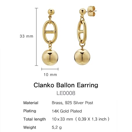 • Semper.L 14K Gold Plated S925 Sterling Silver Post Lightweight Drop/Dangle Huggie Stud Earrings for Women | Ball Drop Earrings