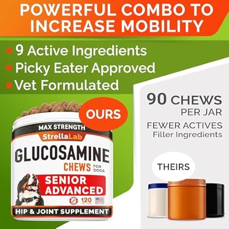 Thương hiệu STRELLALAB là cái tên nổi tiếng được rất nhiều khách hàng trên thế giới chọn lựa. Với kiểu dáng đẹp mắt, sang trọng, sản phẩm Senior Advanced Glucosamine Chondroitin Joint Supplement for Dogs - Hip & Joint Pain Relief Pills - Large & Small Breed - Hip Joint Chews Canine Joint Health - Chews Older Dogs - Bacon Flavor-120Ct là sự lựa chọn hoàn hảo nếu bạn đang tìm mua một món cho riêng mình.
