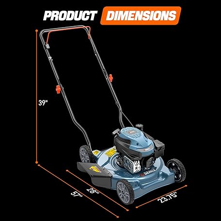 Thông tin sản phẩm SENIX 20" Gas Lawn Mower, 144 cc Gas Powered Lawnmower, 4-Cycle Engine Walk-Behind Push Lawn Mowers, 3 Position Height Adjustment for Yard and Garden, cortadora de pasto