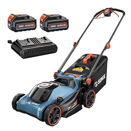 Sản phẩm SENIX 40V 17" Electric Lawn Mower, Battery Powered Cordless Lawnmower, 2-in-1 Brushless Walk-Behind Push Mowers, 6 Heights Adjustment, cortadora de pasto, Includes 2x5Ah Batteries & Charger, LPPX2-M5 đang được bán với giá ưu đãi là $215.5911 tại nước Mỹ.