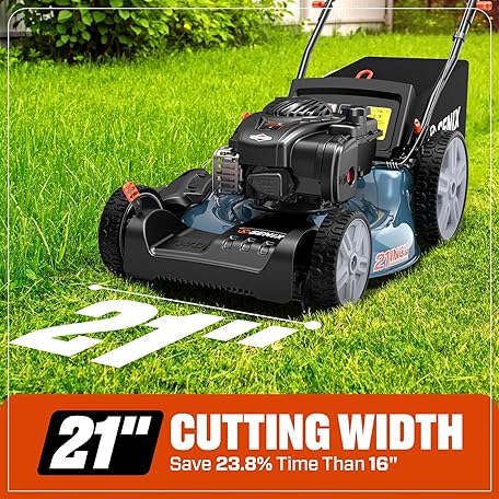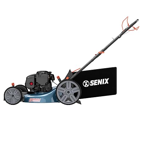 SENIX LSSG-M9 21-inch Gas Self-Propelled Lawn Mower - 140 cc 4-Cycle Briggs & Stratton Engine, Bagging, Mulching, and Side Discharge, 6-Position Lever Height Adjustment