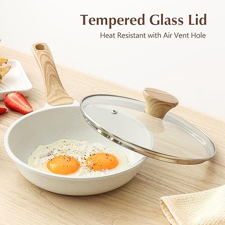 Thông tin sản phẩm SENSARTE Nonstick Ceramic Frying Pan with Lid 8/9.5/10/11/12.5 Inch Omelet Pan Skillet, Free of Intentionally Added PFAS/PTFE Non-toxic Chef's Pan Induction Compatible Pan, Heat Resistant Handle