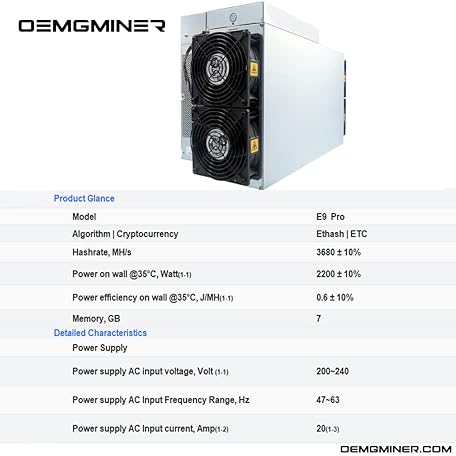 Sản phẩm Sense Miner Bitmain Antminer E9 Pro ETC Ethash Miner Hashrate 3680M Power 2200W 0.6J/M with PSU đang được bán với giá ưu đãi là $2941.91 tại nước Mỹ.