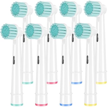 Sensitive Gum Care Replacement Toothbrush Heads Compatible with Oral B Electric Toothbrushes, 8 Pack Sensitive Clean Soft Bristles Brush Heads Refill for Oral B Pro, Genius, Vitality. White