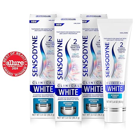 Thông tin sản phẩm Sensodyne Clinical White Toothpaste Clinically Proven Whitening for Sensitive Teeth, Intensive Clean, 3.4 oz (3 Pack)