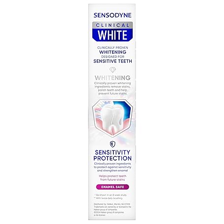 Sản phẩm Sensodyne Clinical White Toothpaste Clinically Proven Whitening for Sensitive Teeth, Stain Protector, 3.4 oz x 3 đang được bán với giá ưu đãi là $27.7514 tại nước Mỹ.