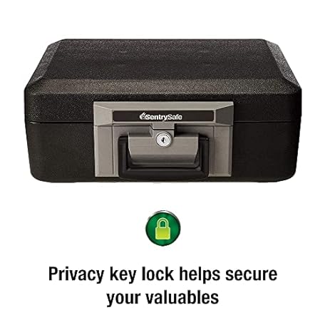 Thông tin sản phẩm SentrySafe Fireproof Safe Box with Key Lock, Chest Safe with Carrying Handle to Secure Money, Jewelry, Documents, 0.25 Cubic Feet, 6.3 x 15.3 x 12.1 Inches, 1160