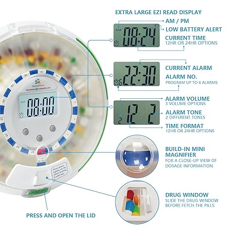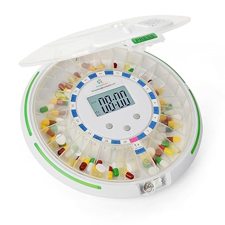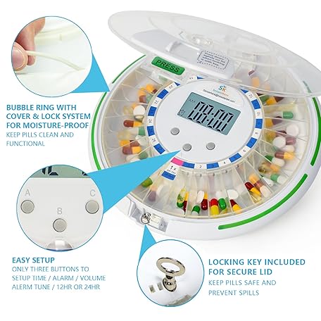 Sản phẩm SenyerKare Automatic Pill Dispenser with Alarm, Flashing Light and Sound, 28 Day Pill Dispenser Machine for Elderly, Frosted Lid with Safety Lock, Medication Dispenser Improving Your Pills Privacy đang được bán với giá ưu đãi là $63.2091 tại nước Mỹ.