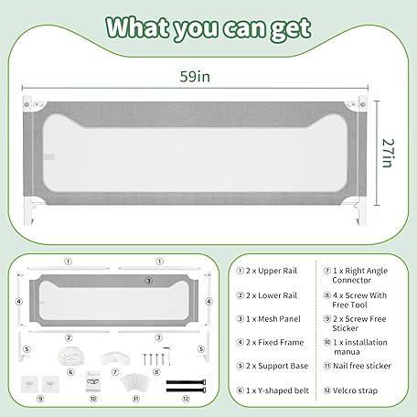 • Sephyroth Bed Rails for Toddlers, Upgrade Height Adjustable Baby Rail Guard Specially Designed Twin, Full, Queen, King Size - Safety Kids 1 Side:59"(L) ×27"(H)