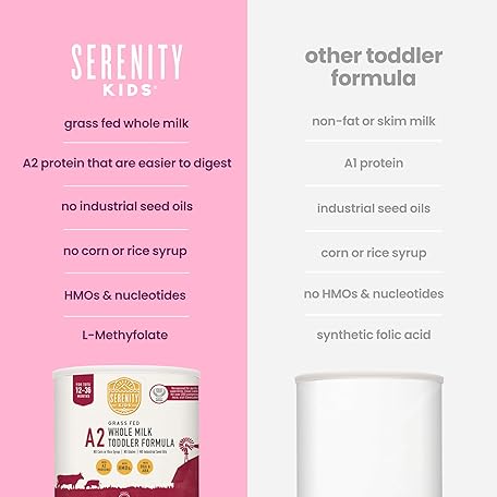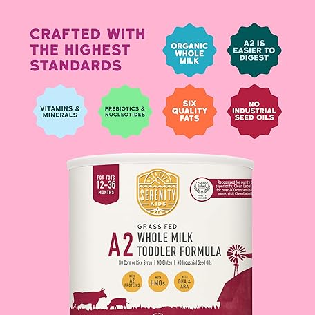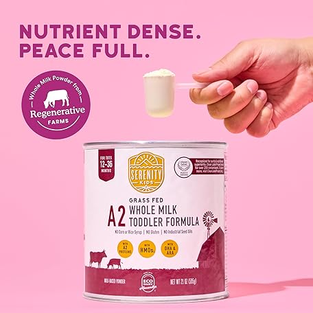 Thông tin sản phẩm Serenity Kids 12-36 Months A2 Whole Milk Toddler Formula Powder - Organic Grass-Fed Milk Powder with Prebiotics & DHA & ARA for Brain & Eye Support - Clean Label Purity Award Certified - 21 Oz, 1 Pack