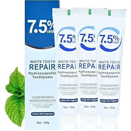 • Set 3-Pack Hydroxyapatite Toothpastes for Enamel Protection and Tooth Strengthening,Fresh Breath,Formula mild Mint, Daily Use for Oral Health. (3)