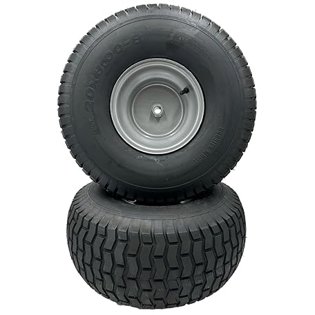 Set of 2 - Silver 20x8.00-8 Lawn Mower Tire with Rim - Fits on 3/4 Inch Axle