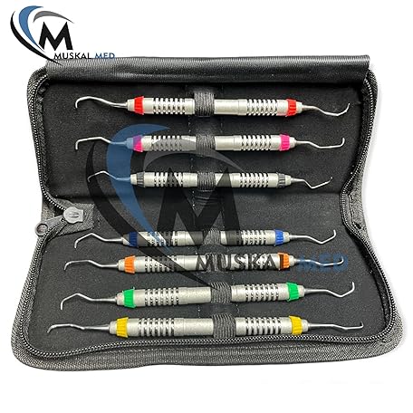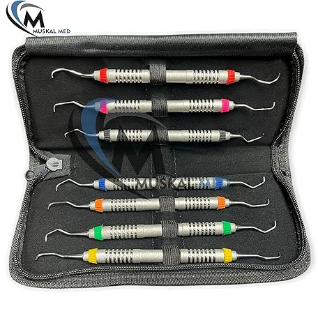 • Set of 7 Gracey Dental Periodontal Curettes 1/2-13/14 Double Ended Special Handle Stainless Steel Dental Instruments with Carrying Case Kit 2304
