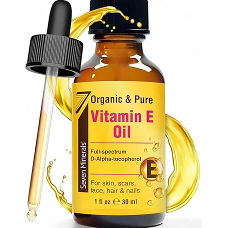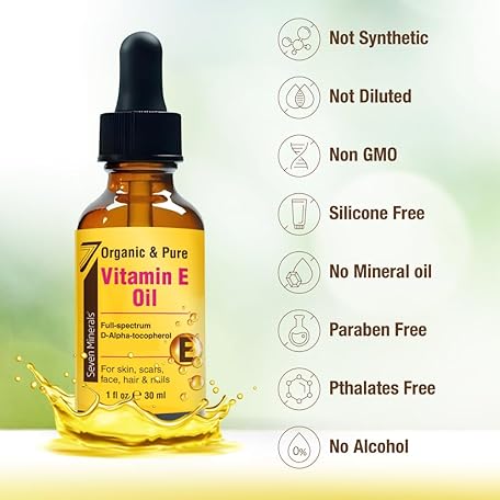 Thông tin sản phẩm Seven Minerals Ultra Pure Vitamin E Oil - Full-Spectrum D-Alpha Tocopherol, 1 Fl Oz - 100% Organic Vitamin E Oil for Skin, Face, Hair, and Scars - Naturally Occurring = Not Synthetic