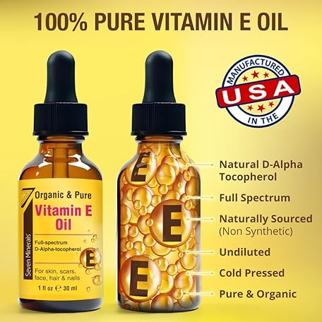 Sản phẩm Seven Minerals Ultra Pure Vitamin E Oil - Full-Spectrum D-Alpha Tocopherol, 1 Fl Oz - 100% Organic Vitamin E Oil for Skin, Face, Hair, and Scars - Naturally Occurring = Not Synthetic đang được bán với giá ưu đãi là $16.2955 tại nước Mỹ.