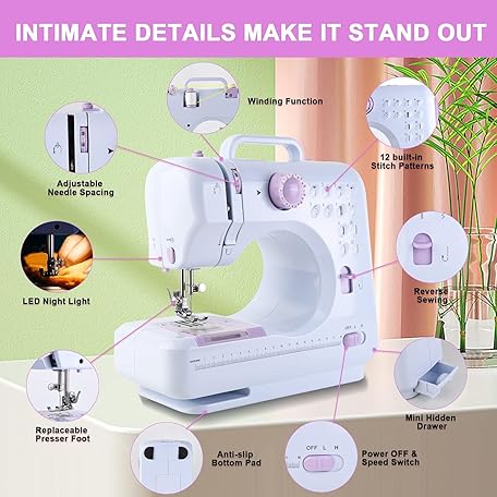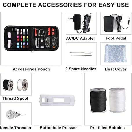 Thông tin sản phẩm Sewing Machine for Beginners & Kids, Mini Portable Sewing Machines with 12 Built-in Stitch Patterns, 2-Speed Foot Pedal, Perfect for Teaching Daughter Granddaughter to Sew(27 Pieces Sewing Kit & Case)
