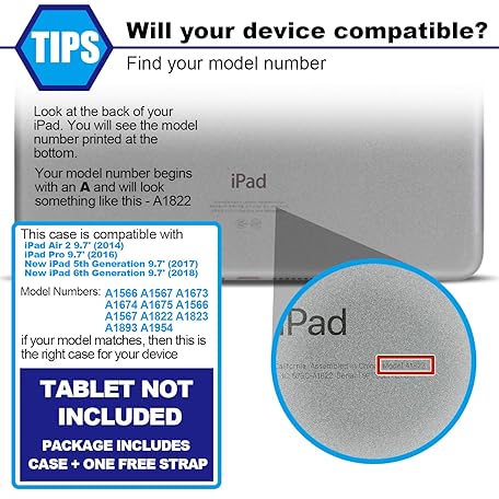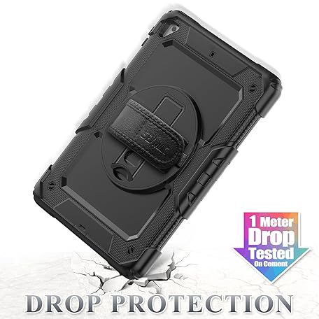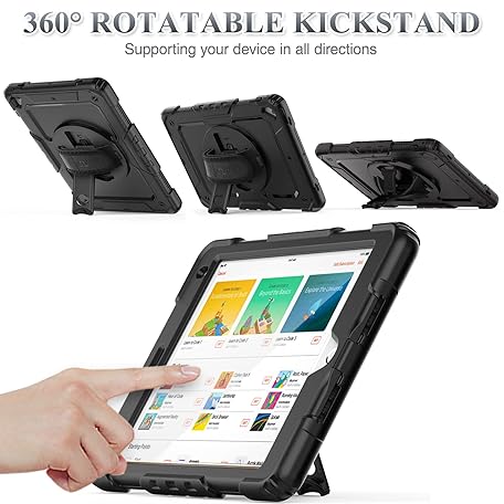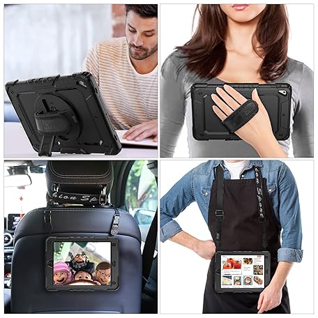 Thông tin sản phẩm SEYMAC stock Case for iPad 6th / 5th Generation Case/Air 2 / Pro 9.7 inch, Heavy Duty Protective with Screen Protector, with Pencil Holder, Hand Strap, Shoulder Strap, 360 Rotate Stand, Black