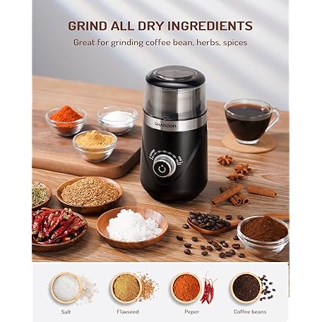 Thông tin sản phẩm SHARDOR Electric Super Silent Blade Coffee Grinder, Timed Grind Control Rotary Knob, Adjustable Coarse to Fine for Coffee Beans, Spices & Herbs, with 1 Removable Stainless Steel Bowl, Black