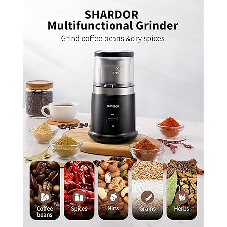 Thông tin sản phẩm SHARDOR One Touch Coffee Grinder Electric, Spice, Herb, For Coffee Bean Spices and Seeds with 1 Removable Stainless Steel Bowl, Dry Grinder, Black