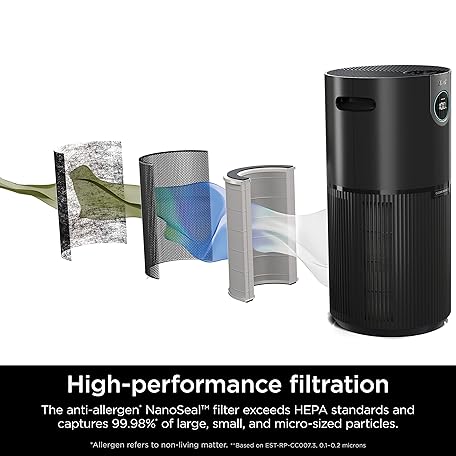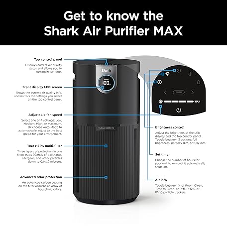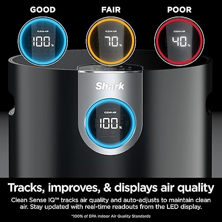 Thông tin sản phẩm Shark Air Purifier for Home, Office, and Bedroom, Clean Sense Technology, HEPA Air Filter, 1200 Sq Ft, Captures 99.98% of Particles, Pet Dander, Pollutants, Dust, Smoke, Allergens & Smells, HP202
