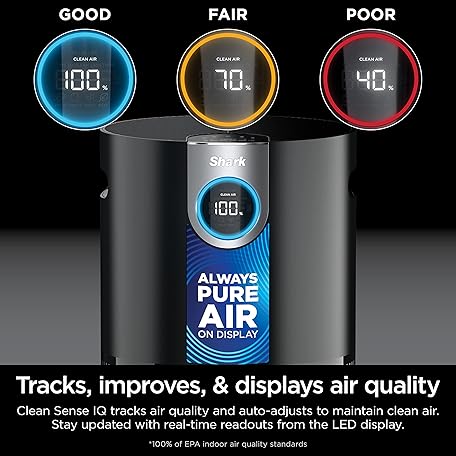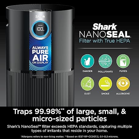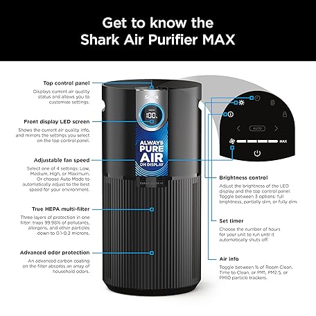 Thông tin sản phẩm Shark AP1000 Clean Sense Air Purifier MAX, Allergies, HEPA Filter, 1100 Sq Ft, XL Room, Living Room, Whole Home, Captures 99.98% of Particles, Pollutants, Dust, Smoke, Allergens & Smells, Grey