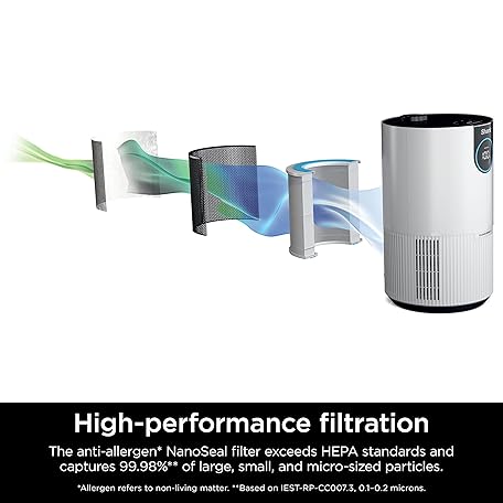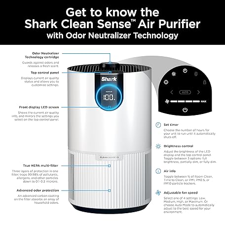 Thông tin sản phẩm Shark HP132 Clean Sense Air Purifier with Odor Neutralizer Technology, HEPA Filter, 500 sq. ft., Small Room, Bedroom, Office, Captures 99.98% of Particles, Dust, Smoke & Allergens, Portable, White