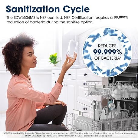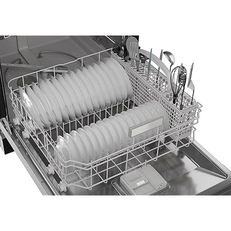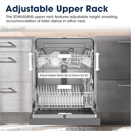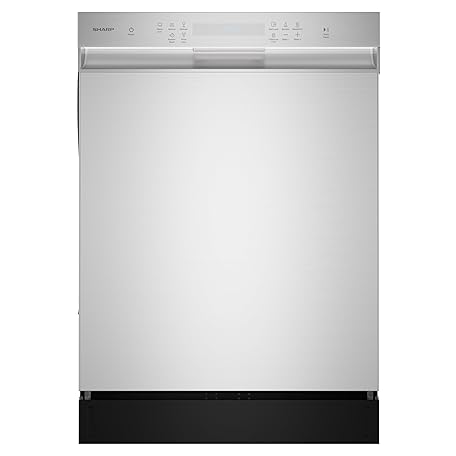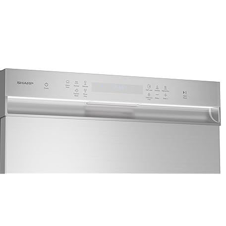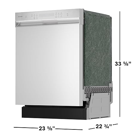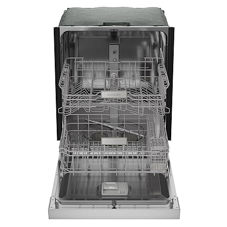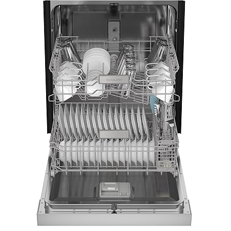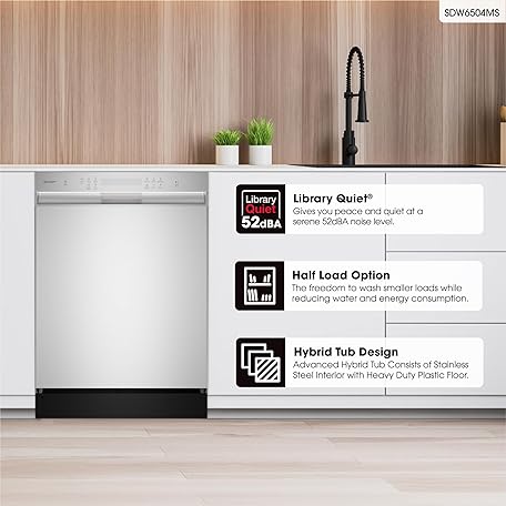 Sharp SDW6504MS Stainless Steel Dishwasher, 24-inch Pocket Handle, 52 dB, Hybrid Tub, 12 Place Settings, 5 Cycles, Heated Dry
