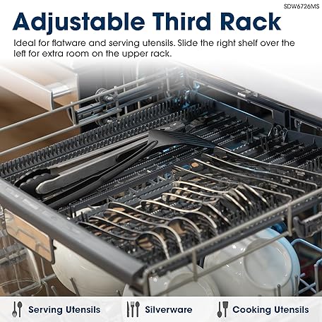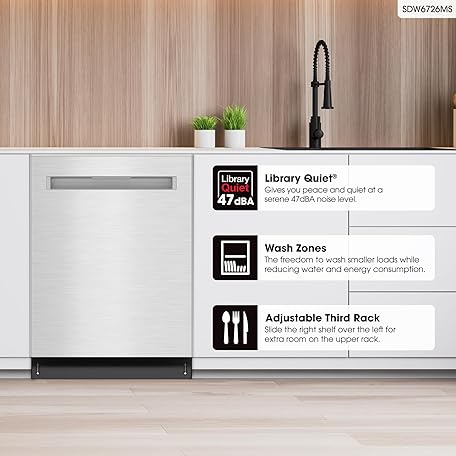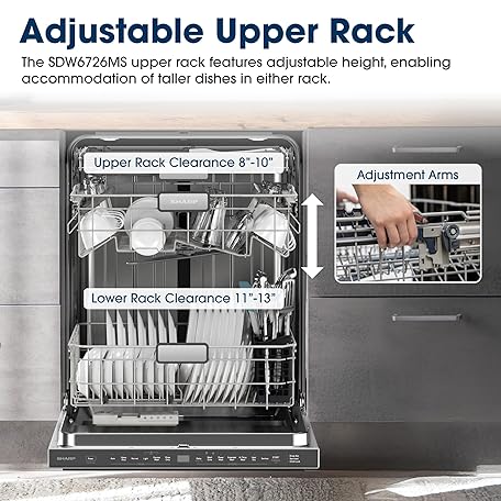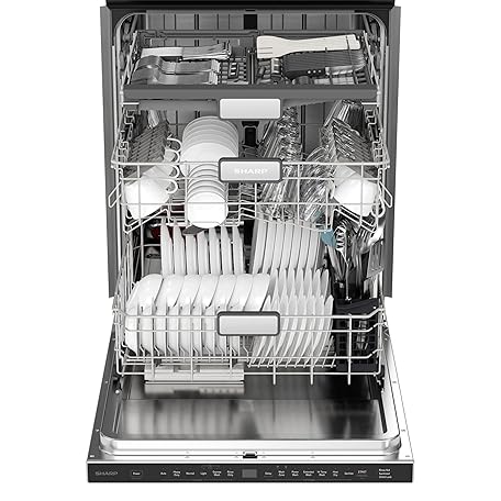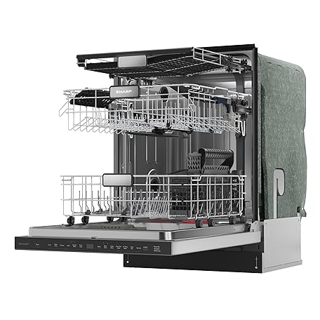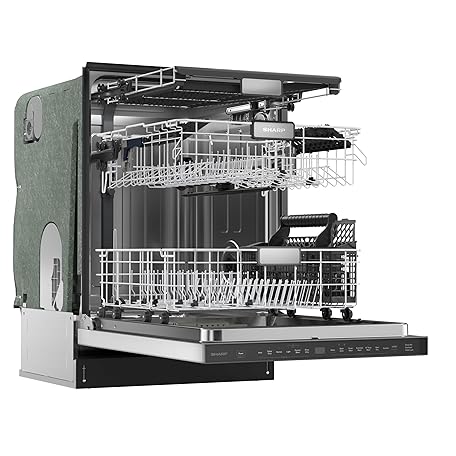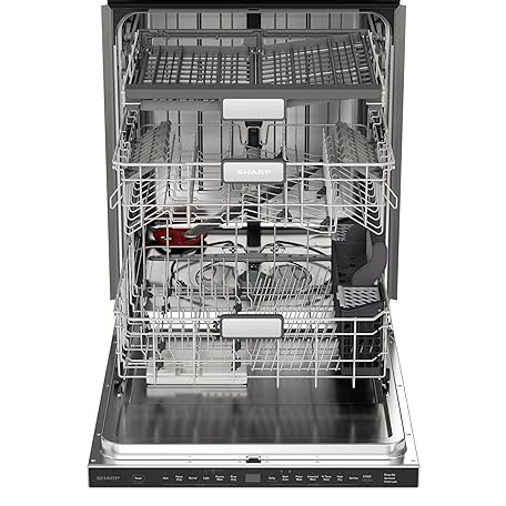 Sharp SDW6726MS 24-inch Stainless Steel Dishwasher, 47 dB Library Quiet, Third Rack, Power Wash Sprayer, 12 Place Settings,