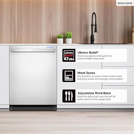 Sharp SDW6736MS 24-inch Stainless Steel Dishwasher, Third Rack, Library Quiet 47 dB, Power Wash Sprayer