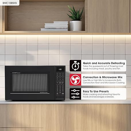 Thông tin sản phẩm Sharp SMC1585KB Convection Countertop Microwave Oven with Removeable 15.4" Carousel Turntable, 1.5 Cubic Feet, 900 Watt, Sensor Cooking, Black