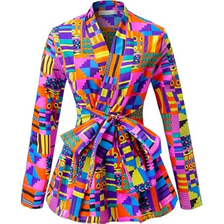• SHENBOLEN Women African Traditional Batik Print Long Sleeve Shirt Dashiki Casual Cotton Shirt
