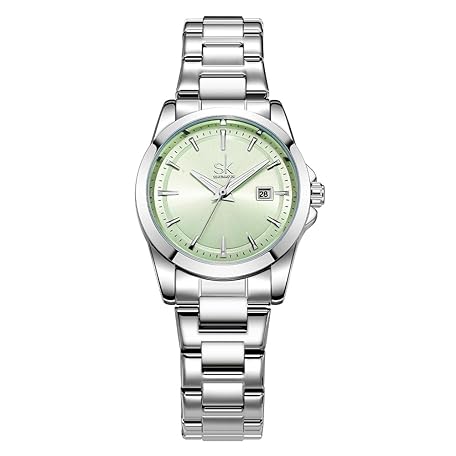 SHENGKE Minimalist Quartz Watches for Women with Date Stainless Steel Bracelet and Fashionable Color Dial