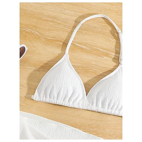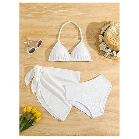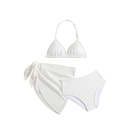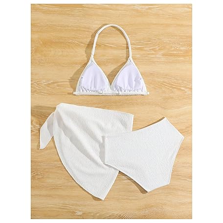 • SHENHE Girl's 3 Pieces Halter Triangle Bikini Sets Spaghetti Strap Swimsuit Smocked Bathing Suit with Beach Skirt