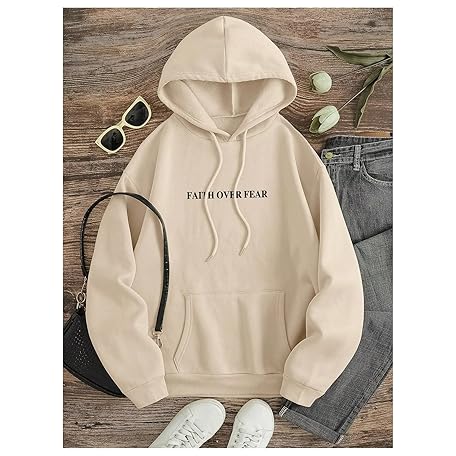 • SHENHE Women's Graphic Hoodie Slogan Faith Over Fear Christian Hoodie Pullover Sweatshirt
