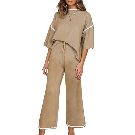Sản phẩm SHEWIN Womens Two Piece Outfits Casual Short Sleeve Knit Sweater Tops Matching Wide Leg Pants Tracksuit Lounge Sets đang được bán với giá ưu đãi là $18.5191 tại nước Mỹ.