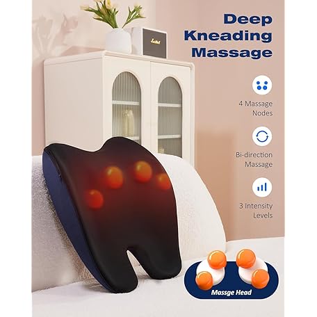 Thông tin sản phẩm Shiatsu Neck and Back Massager with Heat, Neck and Shoulder Massagers, Deep Tissue Kneading Massage Pillow for Lower Back, Shoulder, Leg Muscle Pain Relief, Relax Christmas Gift for Woman Man Dad Mom