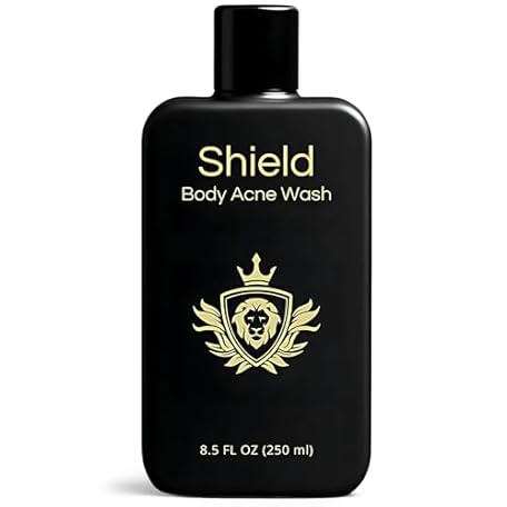 Shield Men's Acne Body Wash for Back, Chest & Shoulders - 4% Benzoyl Peroxide Body Wash, Clears Breakouts & Acne Scars – Unscented with Niacinamide, Glycolic Acid & Ceramides, 8.5 oz