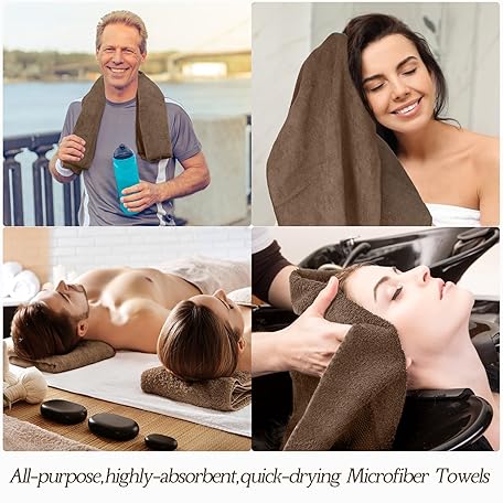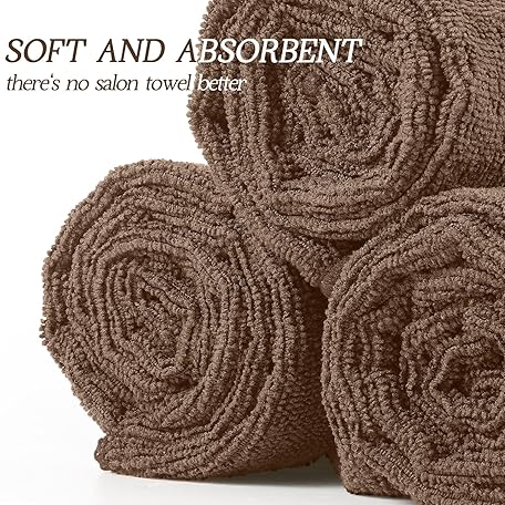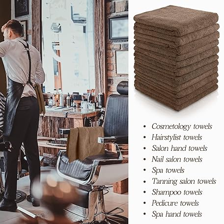 • Shimeyao 40 Pack Bleach Proof Towels Microfiber Absorbent Resistant Hair Hand Towels Bulk Quick Dry 16 x 29 Inches for Barber Gym Bath Spa Shaving (Brown)
