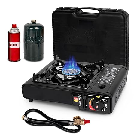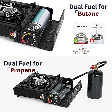 Thông tin sản phẩm SHINESTAR Dual Fuel Stove with Butane & Propane Compatibility, Portable Camping Stove for Outdoor Cooking, Propane Adapter Hose and Carrying Case Included, 7800 BTUs Output