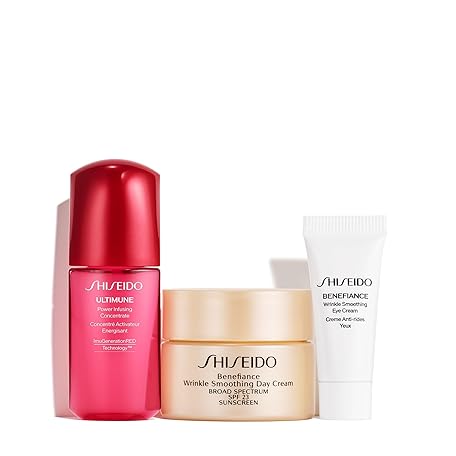 Sản phẩm Shiseido Wrinkle Smoothing Starter Set - Includes Ultimune Power Infusing Concentrate (10mL), Benefiance Wrinkle Smoothing Day Cream SPF 23 (30mL) & Eye Cream (5mL) đang được bán với giá ưu đãi là $49.05 tại nước Mỹ.