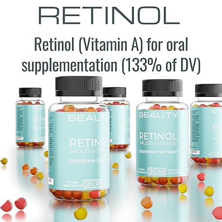 Thông tin sản phẩm SHIZAM Retinol Vitamin A Gummies, Gummy Vitamins for Clear Complexion & Glowing Skin: Anti-Aging Multi-Vitamin for Women: Collagen Booster: Pill/Pills Capsule/Capsules Supplement/Supplements Alt