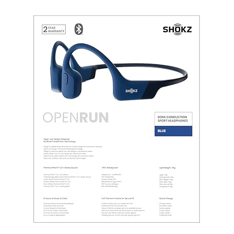 Thông tin sản phẩm SHOKZ OpenRun, Bone Conduction Headphones,Open-Ear Bluetooth Wireless Sport Headphones for Running & Workout,Sweat Resistant, Long 8H Playtime,Mic,Hair Band-Standard-Blue