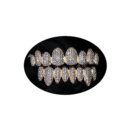 Shop-iGold 14k 1.2 ct CZ Set 8 Teeth Joker Gold/White Grillz for Mouth Top Bottom Hip Hop Teeth Grills for Teeth Mouth Grillz for Mouth Top Bottom Set Shaitani