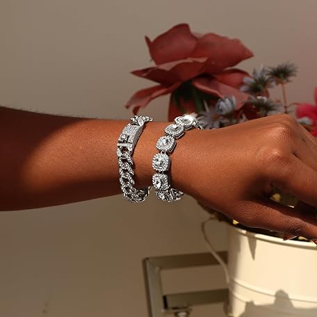 Thương hiệu shopbyskyler là cái tên nổi tiếng được rất nhiều khách hàng trên thế giới chọn lựa. Với kiểu dáng đẹp mắt, sang trọng, sản phẩm shopbyskyler 4PCS Gold Bracelets for Women Silver Clustered Tennis Bracelet for Women Heart Round Diamond Cuban Bracelet Layered Link Bracelet Set Fashion Jewelry for Women Set là sự lựa chọn hoàn hảo nếu bạn đang tìm mua một món cho riêng mình.