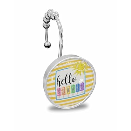 Shower Curtain Hooks 12 Pcs, Hello Summer Slippers with Sun Yellow Stripes Stainless Steel Rust Proof Rolling Shower Curtain Rings, Decorative Shower Curtain Hooks Hangers for Bathroom