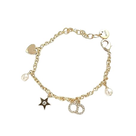 Shrandi 18K Gold Plated Pearl Chain Bracelet for Women, Star Charm Bracelet with Crystal Accents, Designer Jewelry, Dainty Luxury Gift